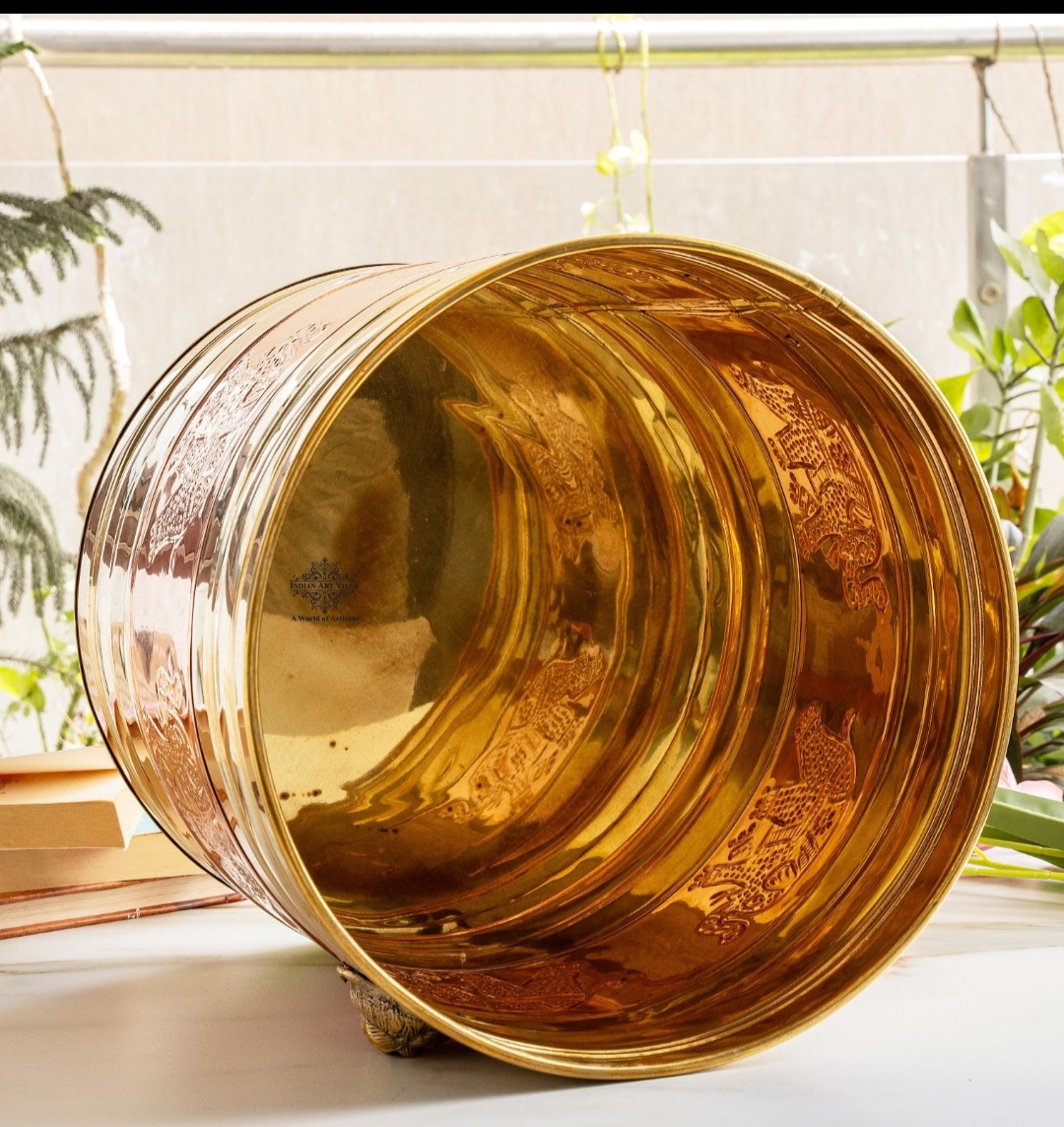 Brass Planter with Embossed & Lining Design & Handle brings an exquisite blend of elegance and functionality to your home decor. Crafted with meticulous attention to detail, this planter is a testament to the rich heritage of Indian craftsmanship. At its core, this planter is crafted from Premium quality brass, renowned for its durability and timeless appeal. The use of brass ensures that the planter withstands the test of time, making it a cherished addition to your indoor or outdoor space for years to come. What sets this planter apart is its stunning embossed design adorning its surface. Intricately crafted, the embossed patterns add a touch of sophistication and grandeur to any environment, elevating the aesthetic appeal of your living space. The lining design further enhances its visual charm, creating a captivating focal point that draws the eye and sparks conversation. Indian Art Villa, a trusted name synonymous with quality and craftsmanship, this brass planter exemplifies excellence in both form and function.